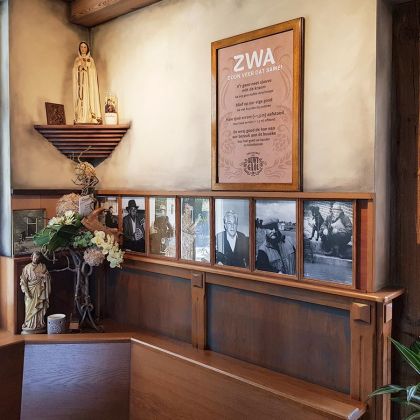 Tussen heiligen en markante stamgasten aan de muur; een voorrecht om hier te zitten.